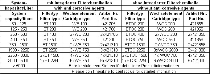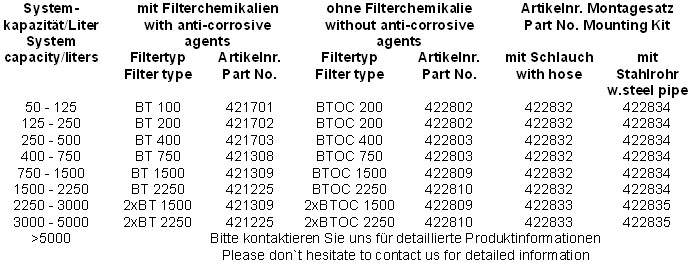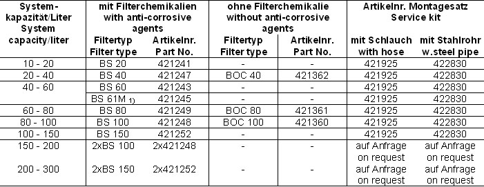 - Topffilter und Montagesätze (Übersichtstabelle)